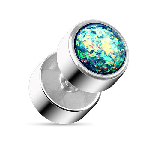 Fake Plug Ohr Piercing Ohrstecker mit Opal Glitter