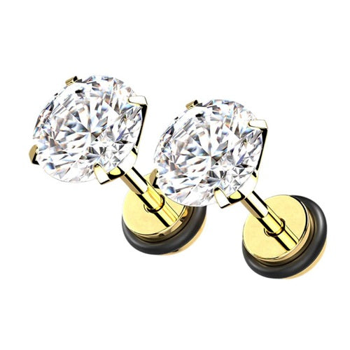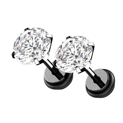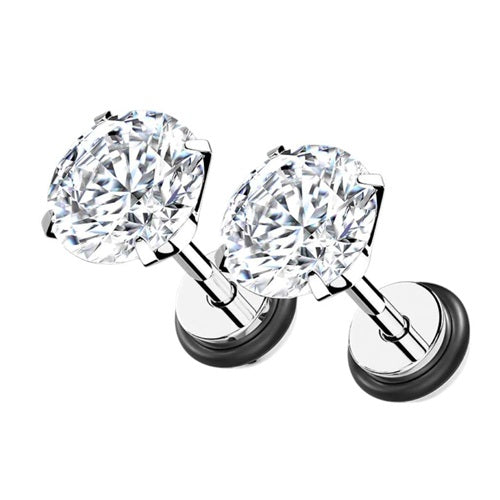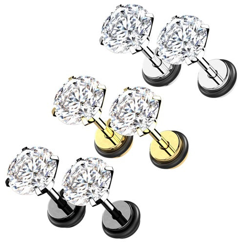 Fake Plug Piercing Ohrstecker Paar mit Zirkonia Kristall Innengewinde