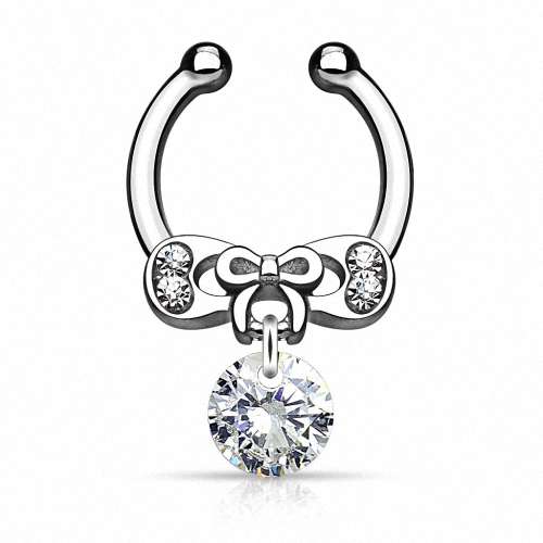 Fake Septum Nasenpiercing Clip On Schild Schleife mit Kristall