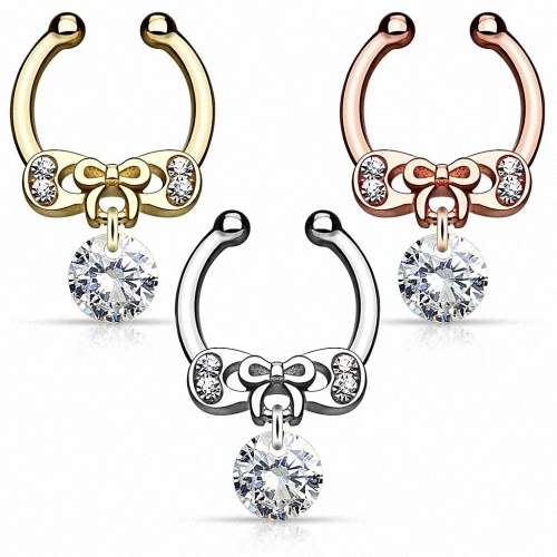 Fake Septum Nasenpiercing Clip On Schild Schleife mit Kristall