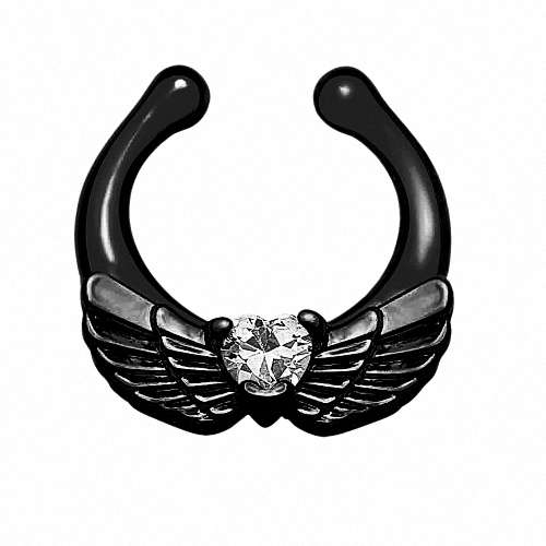 Fake Septum Piercing IP Engelsflügel Herz Kristall