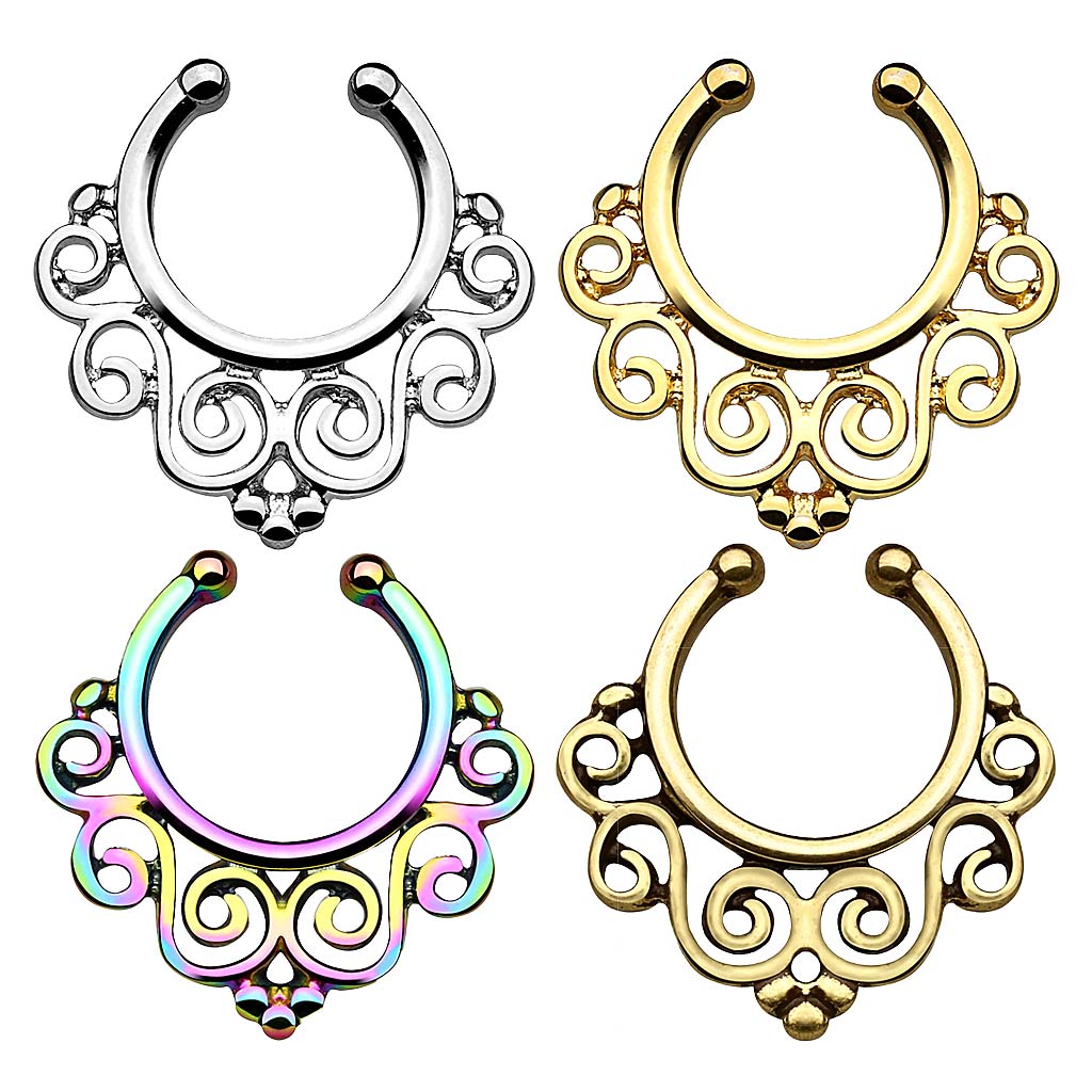 Fake Septum Piercing Vintage Nasenpiercing Blumen Tribal