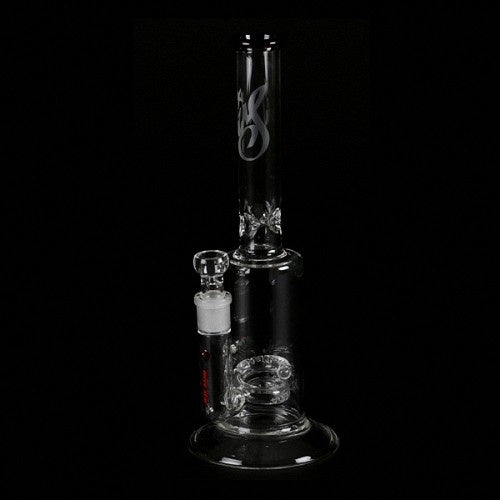 | Technische Daten: | Höhe: ca. 31,5cm Schliff: 18,8 mm Durchmesser Body: 75mm Durchmesser Rohr: ca. 25mm Wanddicke Rohr: ca. 5mm Fuß-Durchmesser: 120mm Kopf: 18,8 mm WS-Pur-Bowl Perculator: Spiral-Perc Eiskerben: Ja (wirklich!) Kickloch: Nein |