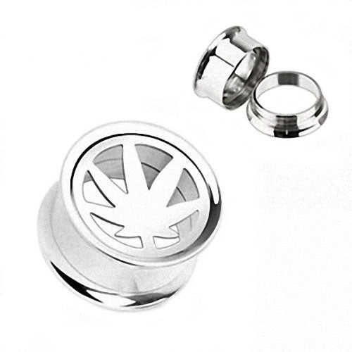 Flesh Ohr Tunnel Edelstahl Silber Hanfblatt