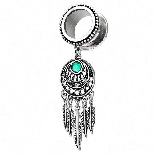 Flesh Ohr Tunnel mit Traumfänger Feder Anhänger Kristall Türkis