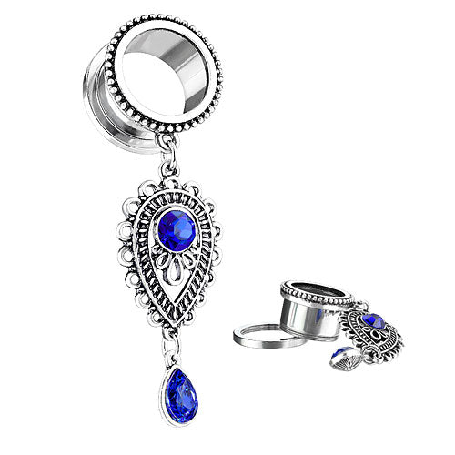 Flesh Ohr Tunnel mit Tribal Tränen Charms Schmuck Anhänger Saphir Blau