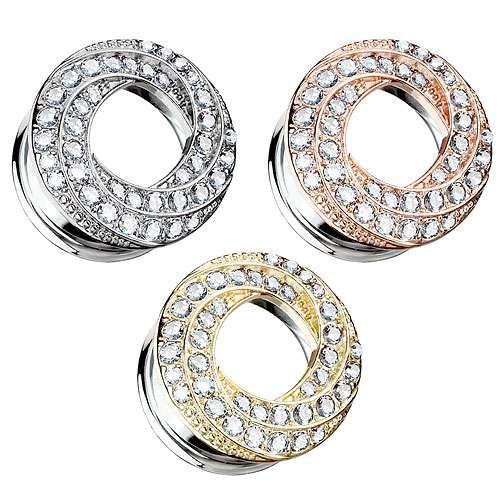 Flesh Ohr Tunnel Piercing mit Tribal Kristall Wirbel