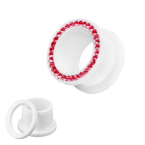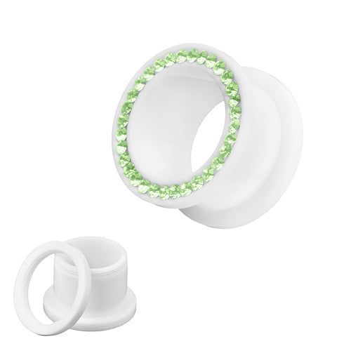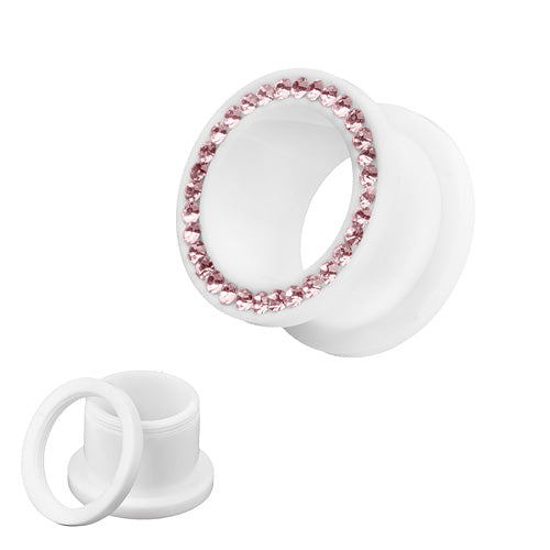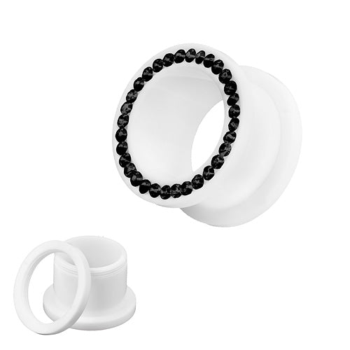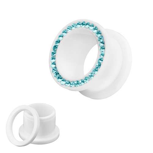 Flesh Ohr Tunnel Piercing Weiß mit farbigen Kristallen