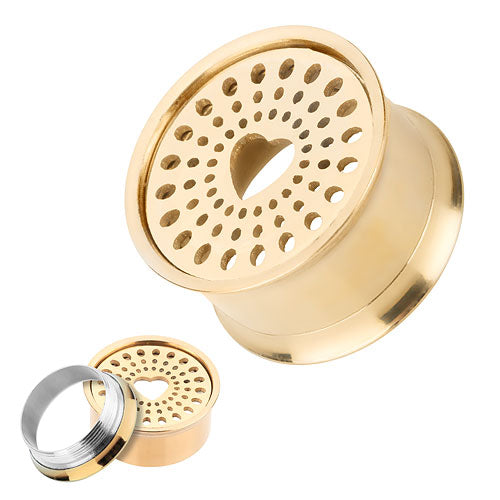 Flesh Ohr Tunnel Plug Herz gelocht Edelstahl vergoldet