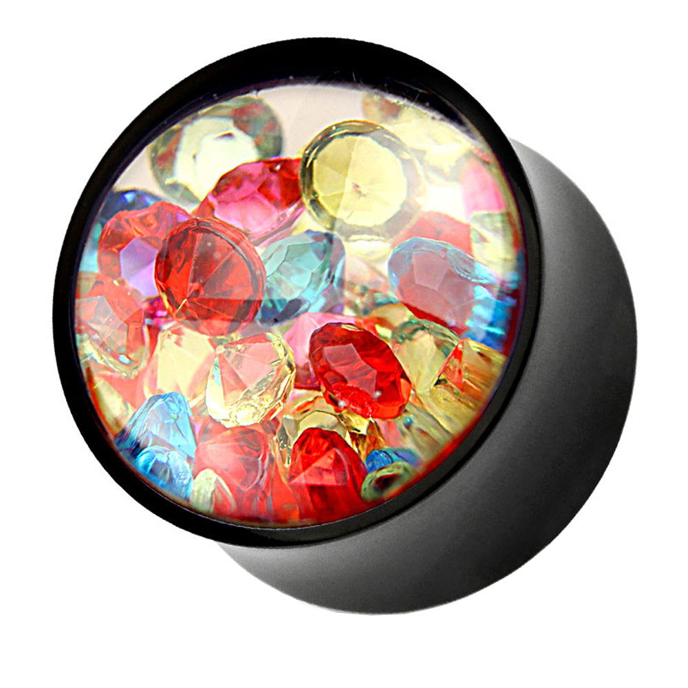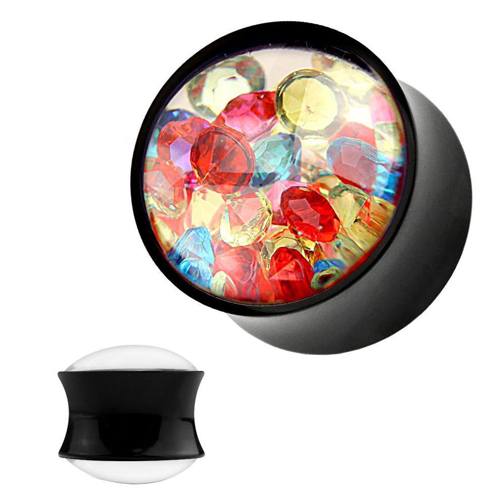 Flesh Ohr Tunnel Plug mit bunten Kristallen gefüllt