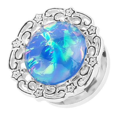 Flesh Ohr Tunnel Plug Tribal Blume mit großem Opal