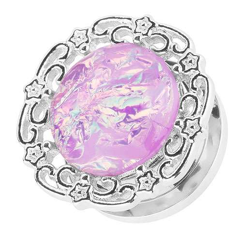 Flesh Ohr Tunnel Plug Tribal Blume mit großem Opal
