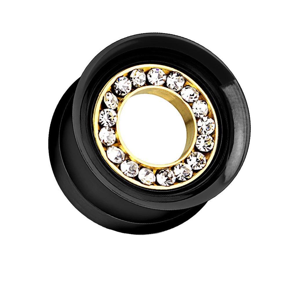 Flesh Ohr Tunnel Schwarz mit Kristall Inlay vergoldet