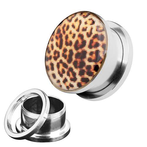 Flesh Schraub Ohr Plug Edelstahl Leoparden Design