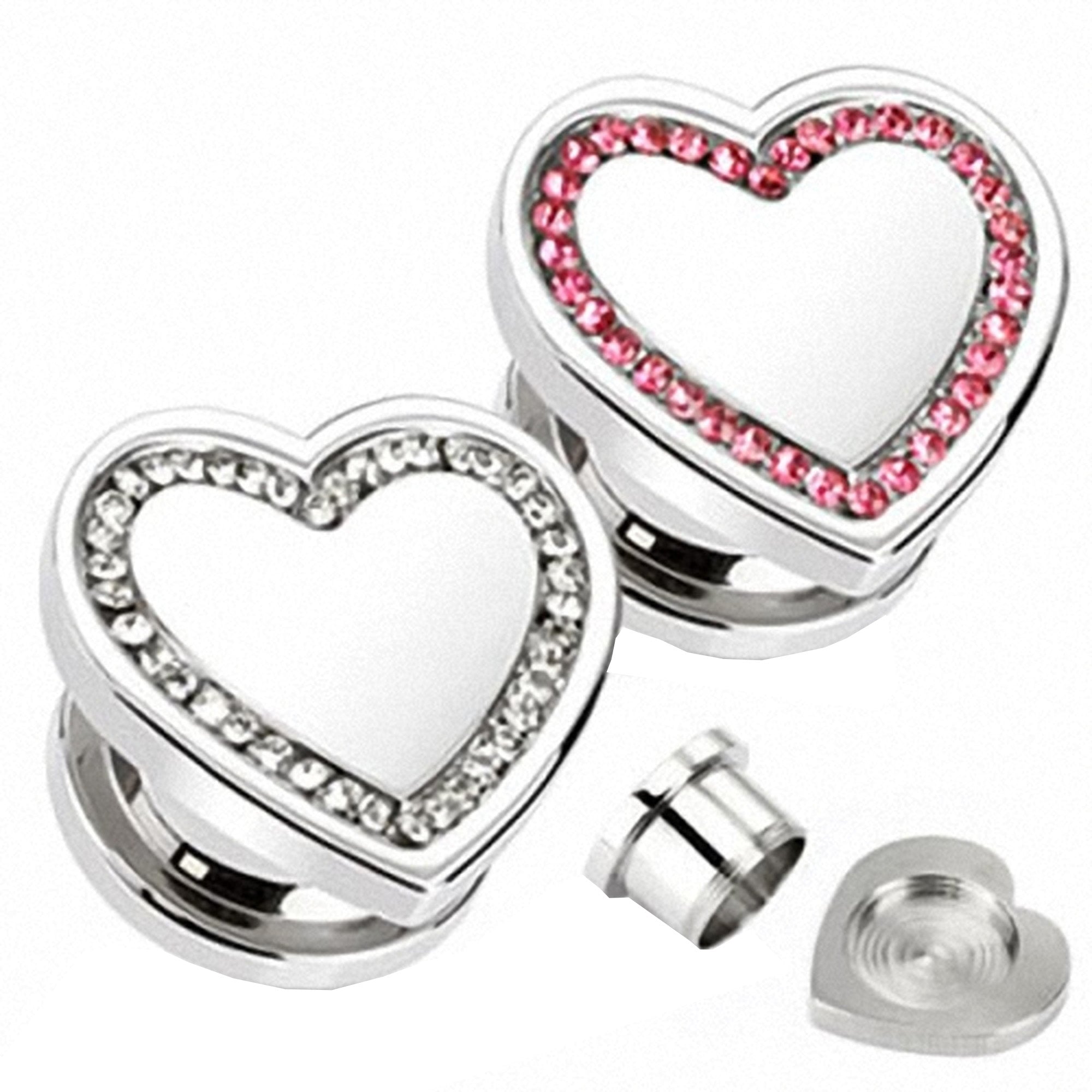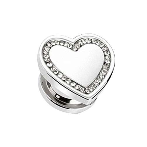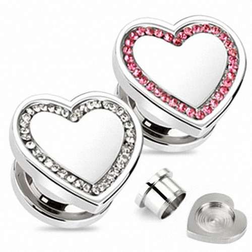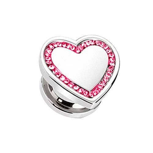 Flesh Schraub Plug Edelstahl Herz Multi Kristall