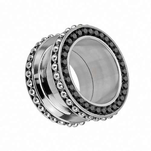 Flesh Schraub Tunnel Multi Steel Ball & Kristall Schwarz