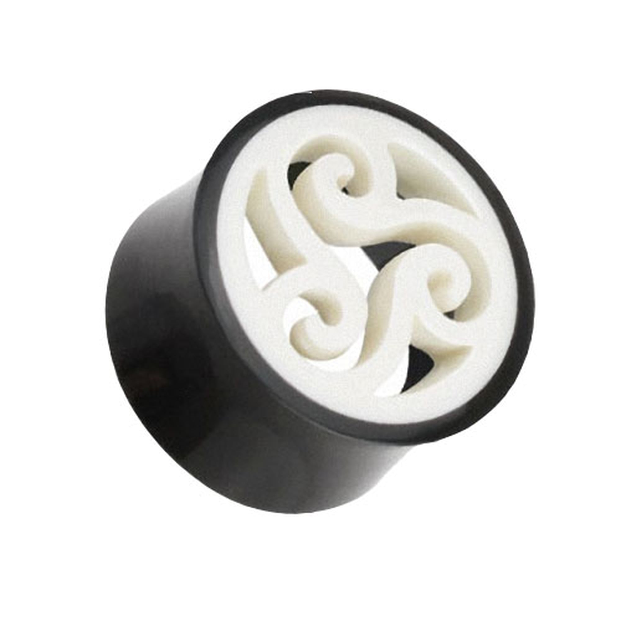 Flesh Tunnel Büffelhorn Schwarz Tribal Inlay Weiß