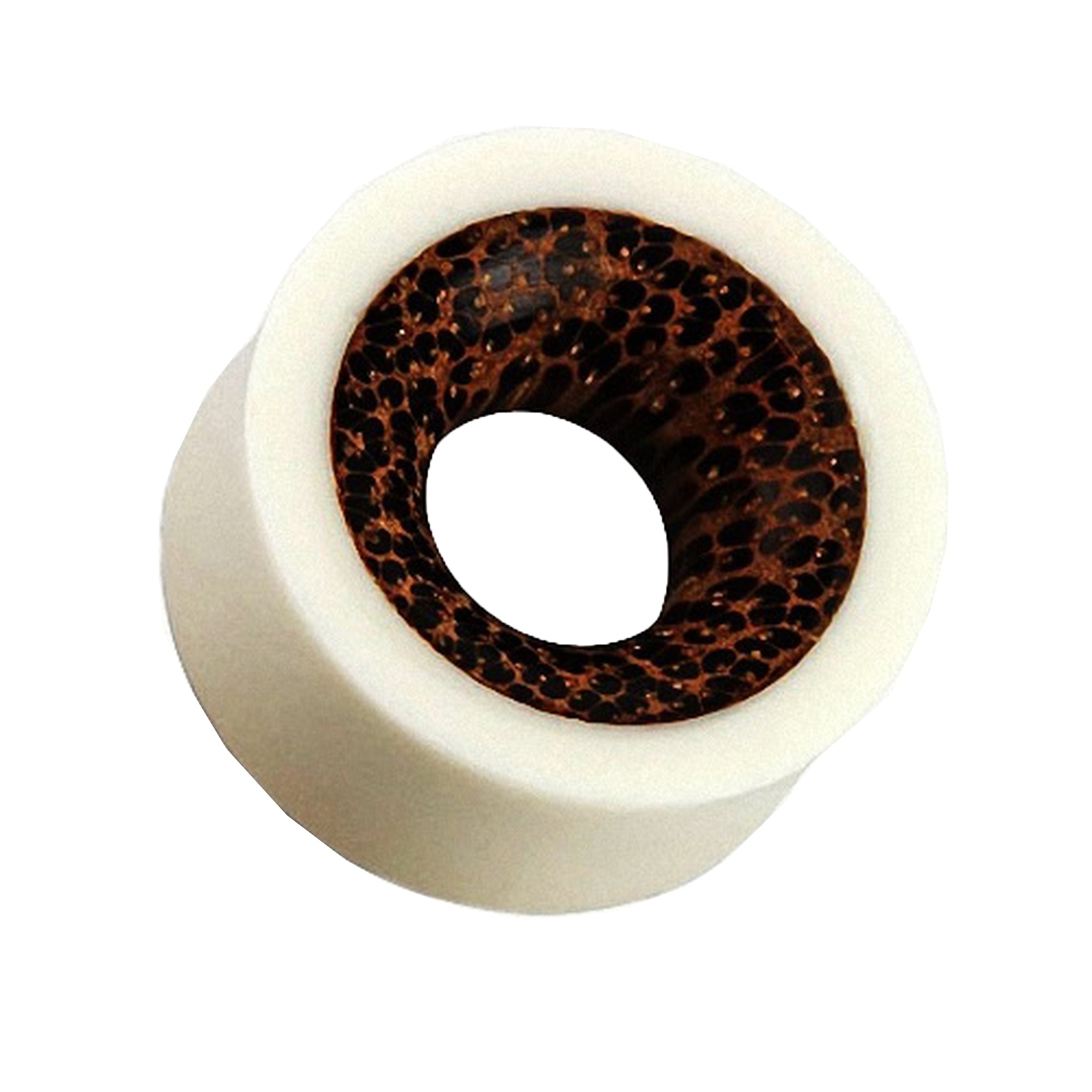 Flesh Tunnel Knochen Weiß mit Kokos Holz Inlay