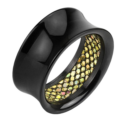 Flesh Tunnel Plug Double Flared Gold Rainbow Glitter Inlay