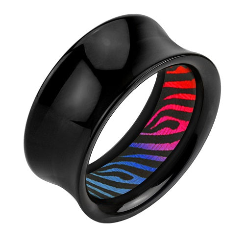 Flesh Tunnel Plug Double Flared Rainbow Zebra Muster Inlay