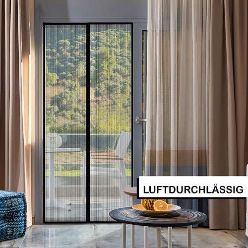 Der Vorhang besteht aus transparentem, insektenabweisendem und atmungsaktivem Material, das Ihnen ein angenehmes Gefühl vermittelt und Ihnen ermöglicht, die warmen Sommertage ohne lästige Insektenstörungen zu genießen.
