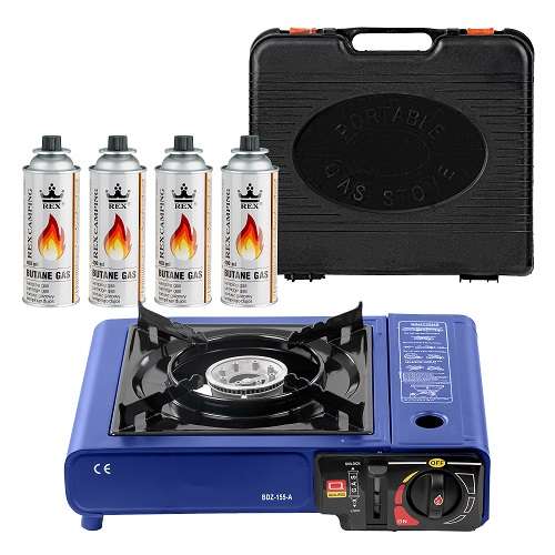 Gaskocher Campingkocher Koffer Butangas Tisch Gas Herd Notfallkocher Blau