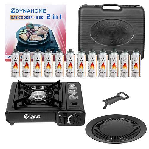 Gaskocher Campingkocher Set + Koffer + Grillplatte Outdoor Kocher BBQ Herd Grill