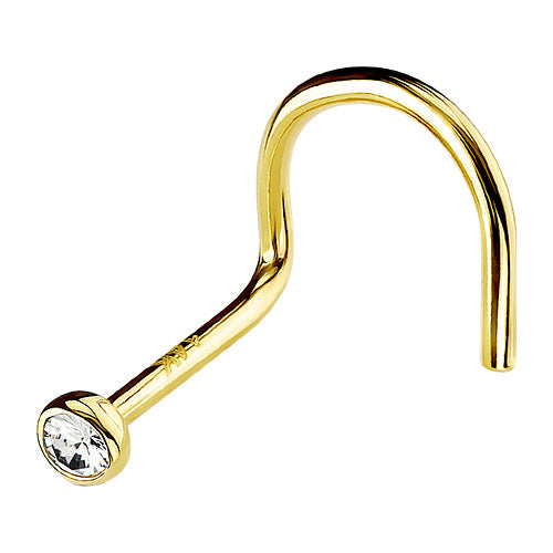 Gold 14 Karat Nasenstecker Nasenpiercing gebogen Zirkonia Schmuck Piercing