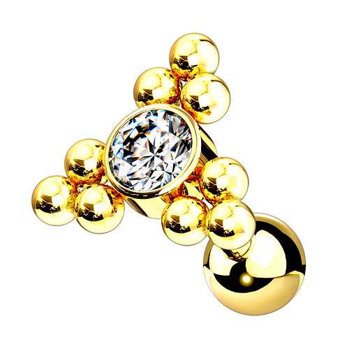 | Beschreibung: | Dieser Schmuck wurde mit kleinen Kugeln verziert. Die mittlere Kugel ist mit einem Kristall versehen. Das Ornament besteht aus Messing und ist passend zum Rest des Piercings auch beschichtet.Der Piercing Stab besteht aus Chirurgenstahl und ist mit einem Außengewinde ausgestattet. Dieser Schmuck wird Hauptsächlich als Helix Piercing benutzt. Man kann Ihn in mehreren Farben erwerben. |