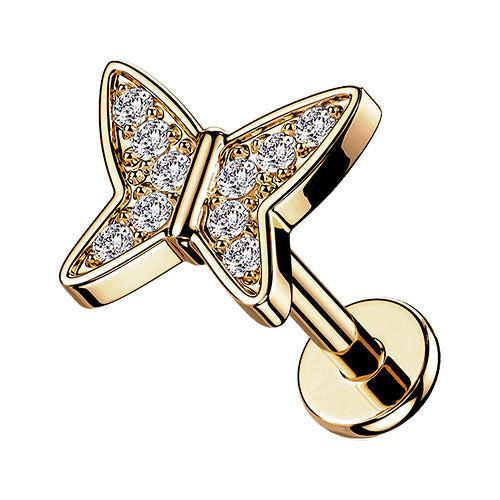 Helix Tragus Labret Piercing Ohrstecker flach Innengewinde Zirkonia Schmetterling