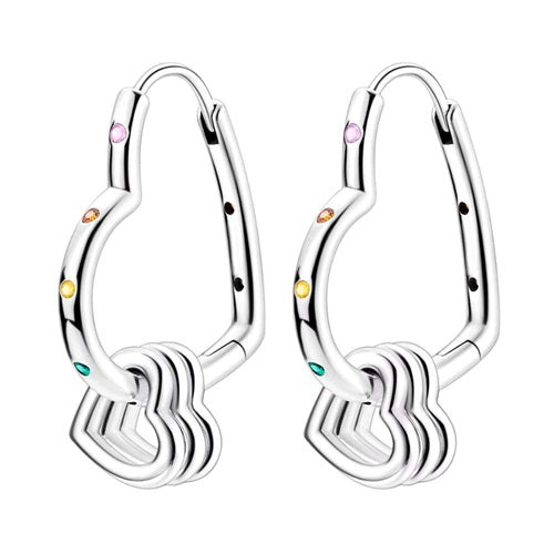 Herz Creolen 925 Silber bunte Kristalle Damen Ohrringe mit 3 kleinen Herzen