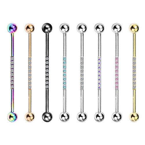 Industrial Ohr Knorpel Piercing Langhantel Barbell Scaffold mit Kristallen
