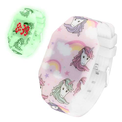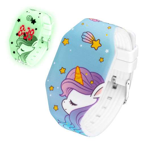 Kinder Armbanduhr Silikon Einhorn Digital LED Uhr Fluoreszierend
