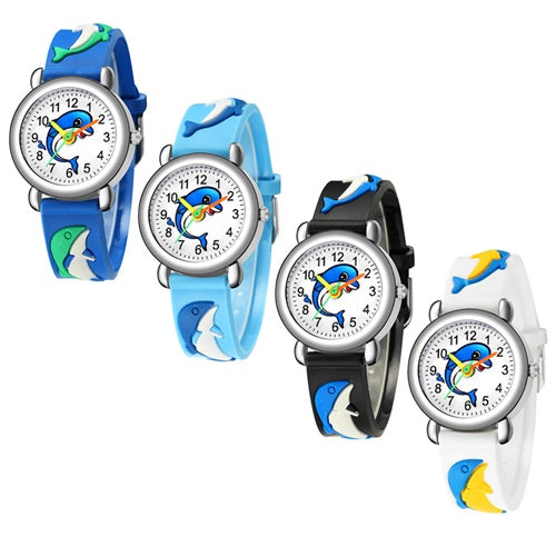 Kinder Armbanduhr Silikon Uhr Bunte Kinderuhr mit Delfin