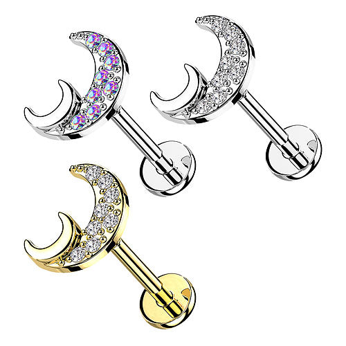 Labret Helix Piercing Ohrstecker flache Rückseite Zirkonia Halbmond Innengewinde