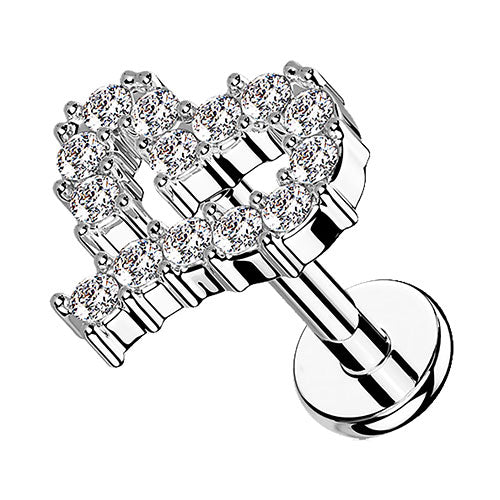 Labret Helix Tragus Conch Piercing Ohrstecker flach Innengewinde Zirkonia Herz