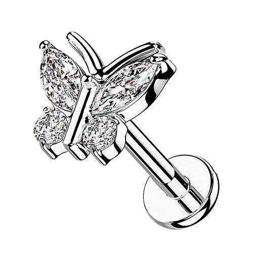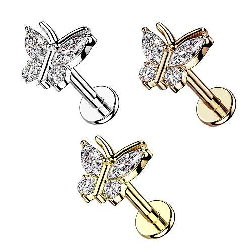 Labret Helix Tragus Ohrstecker Piercing flach Zirkonia Schmetterling Innengewinde