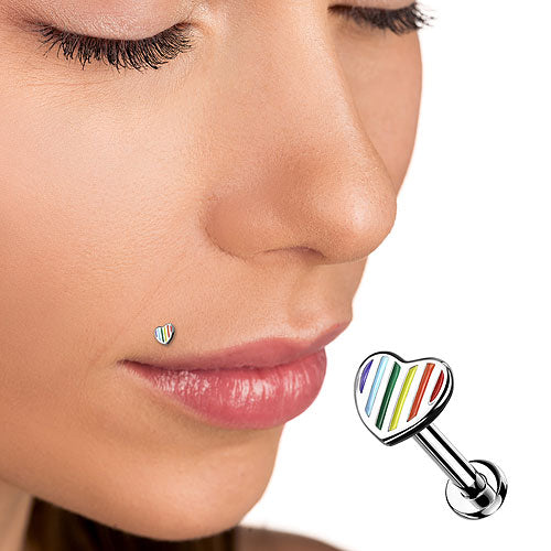 Labret Regenbogen Herz Flach Innengewinde Monroe Tragus Ohr Piercing