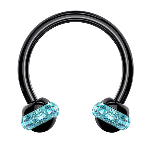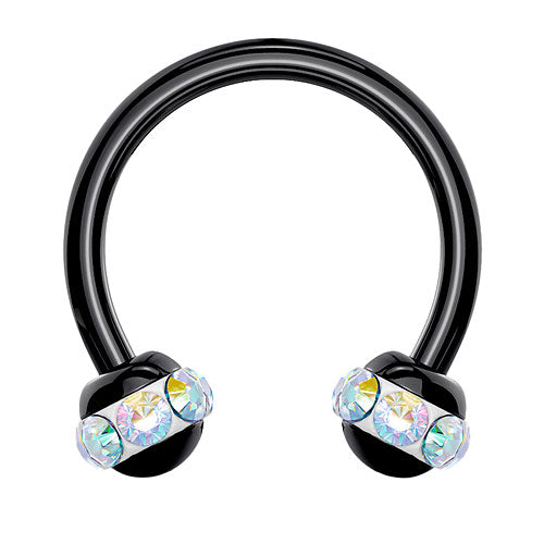 Lippen Ohr Nase Piercing Schwarz Hufeisen Multi Kristall Kugeln Horseshoe