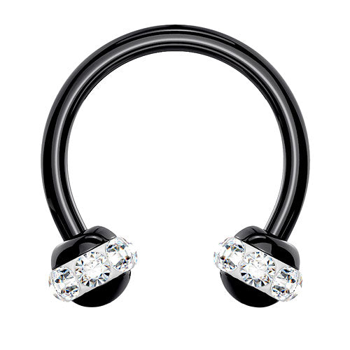 Lippen Ohr Nase Piercing Schwarz Hufeisen Multi Kristall Kugeln Horseshoe