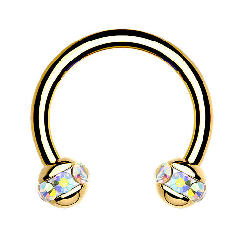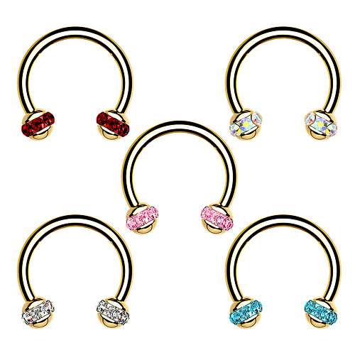 Lippen Ohr Nase Piercing vergoldet Hufeisen Multi Kristall Kugeln Horseshoe