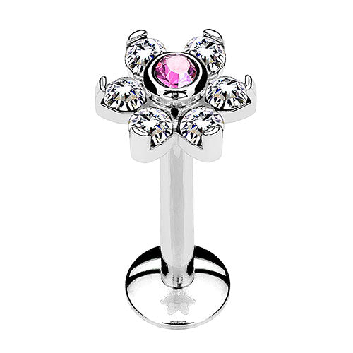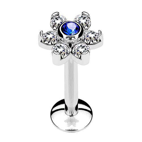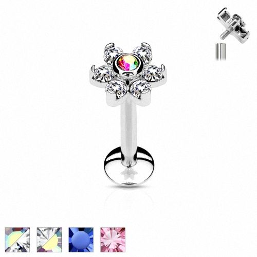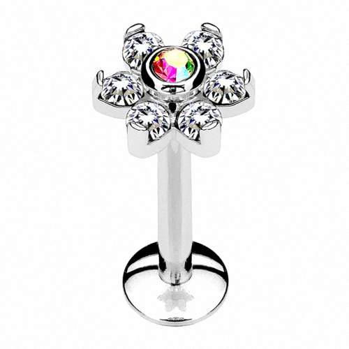 Lippenpiercing Labret Madonna Ohr Stecker Blüte Kristalle Silbern