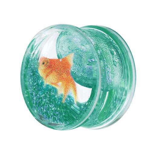 Liquid Glitter Ohr Plug Double Flared Türkis mit Fisch