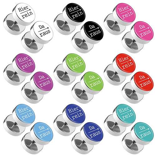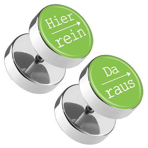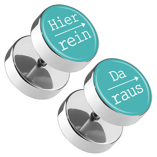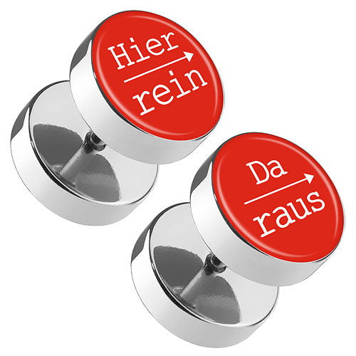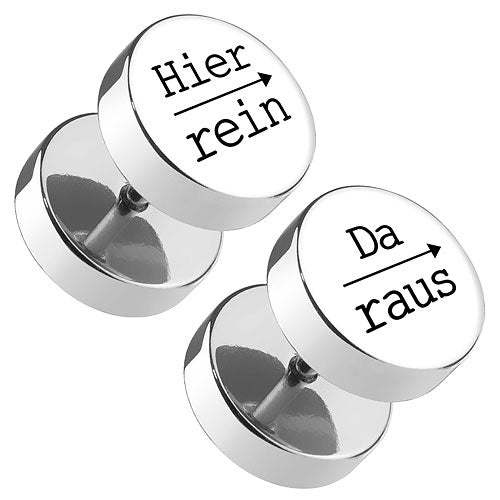 Motiv Fake Plug 1 Paar mit Spruch Hier rein, Da raus