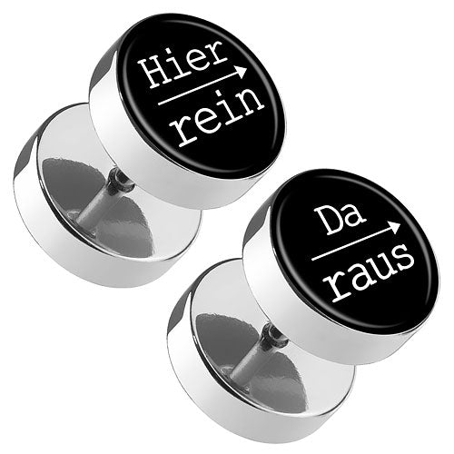 Motiv Fake Plug 1 Paar mit Spruch Hier rein, Da raus