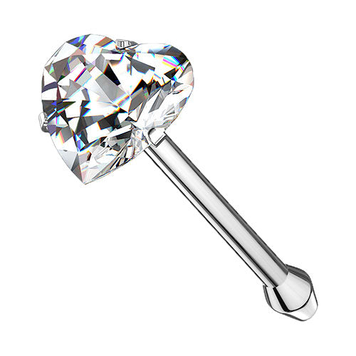 Nasenpiercing Nostril Piercing Stecker mit eingefassten Herz Kristall