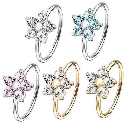 Nasenpiercing Ring Blume mit Kristallen Universal Ohr Piercing