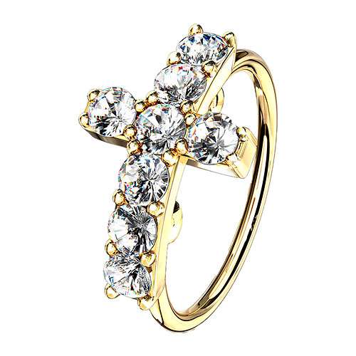 Nasenpiercing Ring Kreuz mit Kristallen Universal Ohr Piercing
