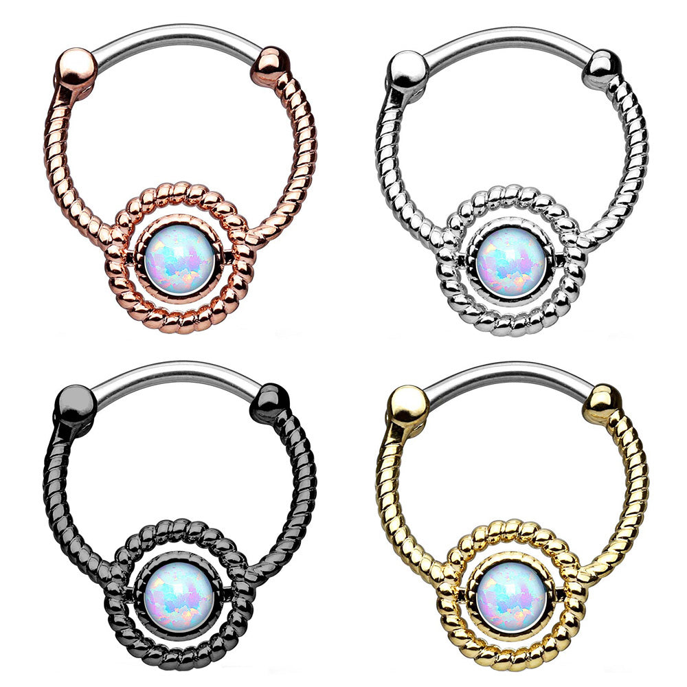 Nasenpiercing Ring Septum Clicker Clip Schild mit Opal Stein