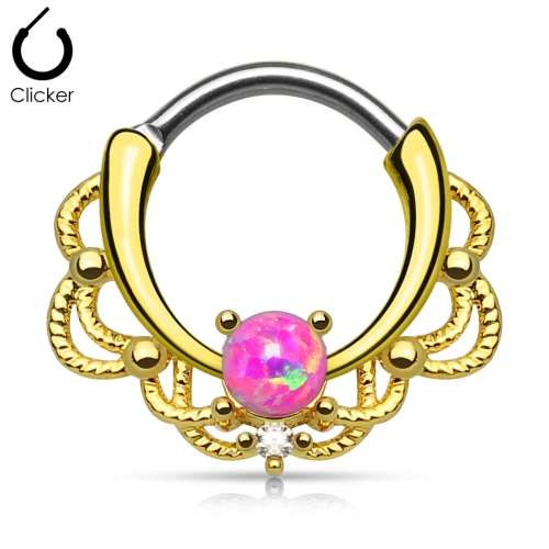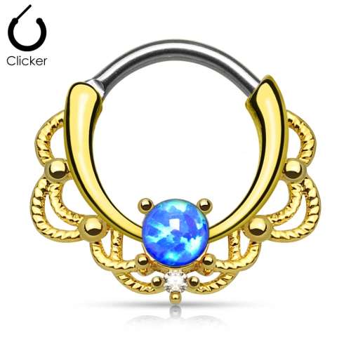 Nasenpiercing Ring Septum Clicker Tribal vergoldet mit Opal